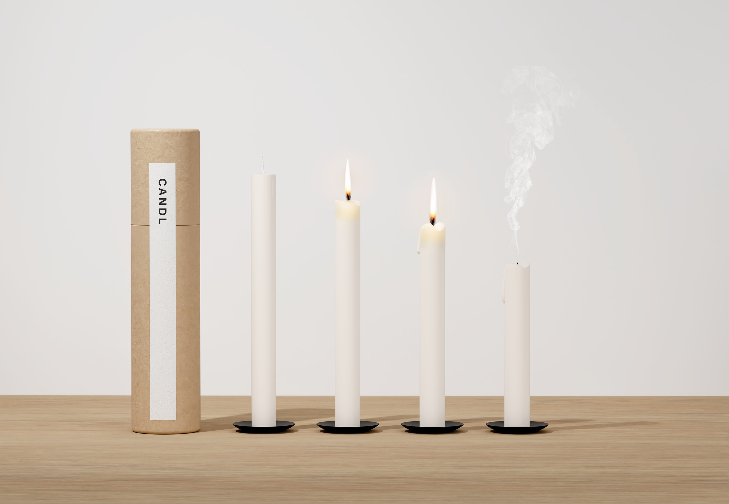 It’s designed to look like a conventional, minimalistic wax candle with a metal stand, but comes with a random, unspecified length of wick. This means, it might burn for up to 6 hours if you are lucky, but maybe only 20 minutes if you are not. After the flame suddenly dies out, Candl becomes a statement piece of your home to always stand as a reminder: seize the moment.